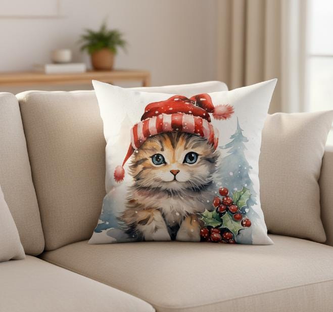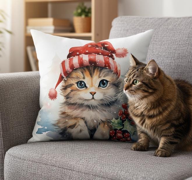 Bring a touch of festive charm and cozy luxury to your home with our Christmas Cat Velvet Cushion Cover, beautifully crafted from soft, high-quality velvet fabric and finished with a detailed, vibrant digital print. Featuring an adorable kitten in a Santa hat, this cushion cover adds warmth, character, and seasonal joy to living rooms, bedrooms, and holiday-styled spaces.