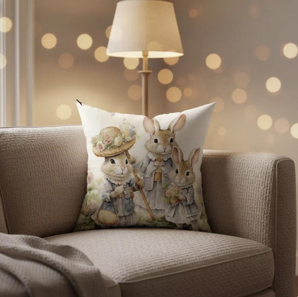 Bring a touch of timeless charm to your home with this Vintage Bunny Pillow Cover, beautifully crafted with a high-quality 3D printed illustration that creates depth, texture, and a lifelike visual effect. The adorable rabbit family design feels straight out of a classic storybook, making it a perfect accent for nurseries, kids’ rooms, and cottagecore interiors.