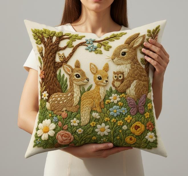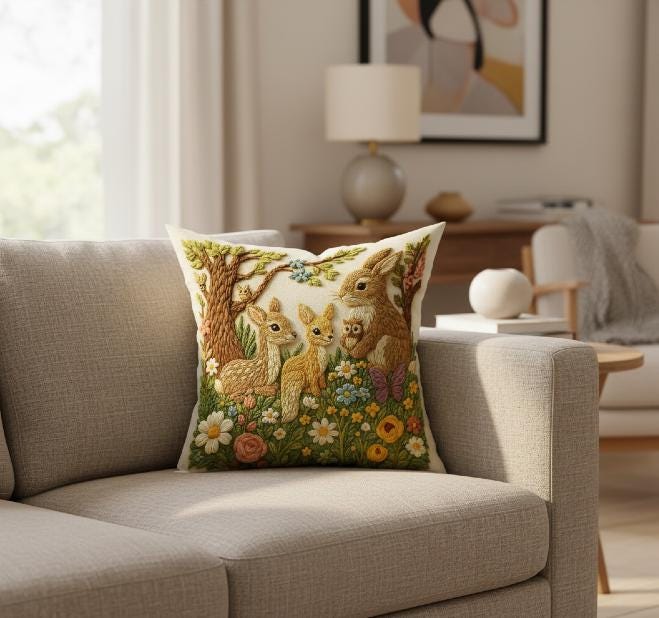 πΏ Woodland Rabbit Velvet Pillow Cover β 3D Digital Print